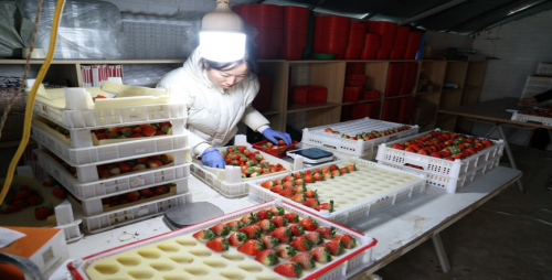 图5(当地村民进行草莓分装)